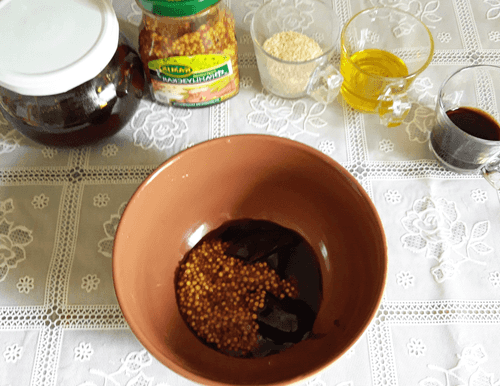 Mix soy sauce, honey, and mustard in a bowl.
