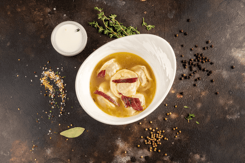 Venison dumplings with sour cream