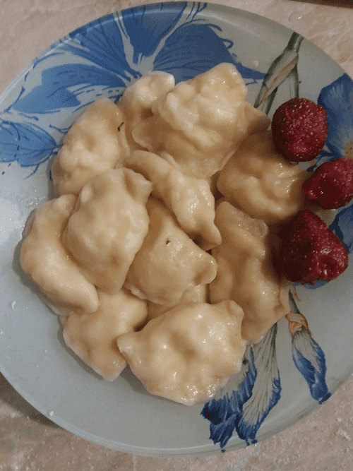 Vareniki with cottage cheese and strawberries are a delicate and fragrant dish of Ukrainian cuisine that captivates the hearts of sweet lovers. The origins of vareniki date back centuries when dough with fillings became a symbol of home comfort. Here, the classic combination of cottage cheese and strawberries creates a harmony of flavors: the softness and creamy texture of the cottage cheese are complemented by the refreshing sweet-sourness of strawberries. Vareniki are easy to prepare — the dough is rolled out, filled with filling, and boiled until light. They can be served with sugar or sour cream, enjoying the warmth and sweetness of each bite. These vareniki are perfect for a cozy breakfast or dessert, awakening memories of family traditions and warm evenings.