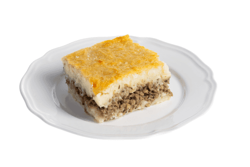 Remember the signature dish of school cafeterias — potato casserole with meat? It was delicious! This recipe is almost a complete repetition of it. True, adding a pinch of nutmeg to the potato mass, and dried Provencal herbs to the mince can work wonders. It is always interesting when an old dish can be prepared and served with a modern twist. The new-old casserole will be especially good with any mushroom sauce.