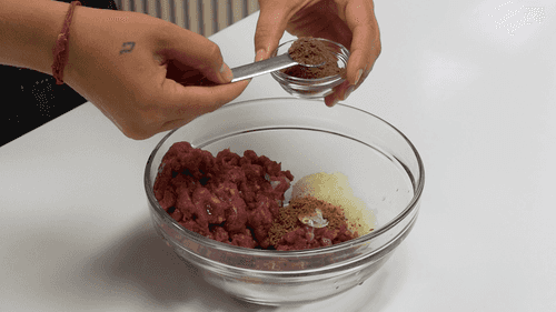 Grate the onion, mix it with the minced meat, add salt and spices.