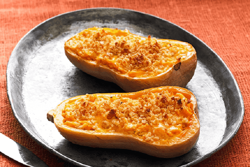Pumpkin squash stuffed with nuts and cheese