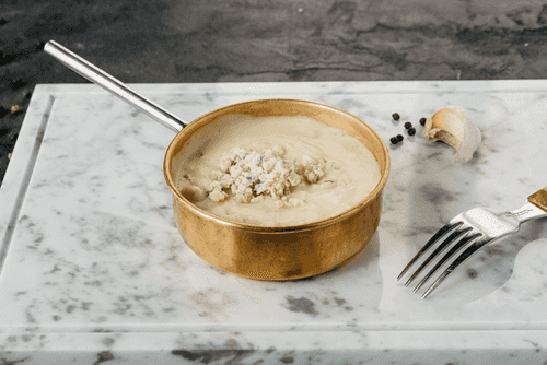 Once there are no lumps left, whip the puree with a silicone spatula — it will enrich the puree with oxygen, helping achieve a creamy taste and texture.