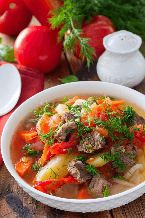 Hashlama made from beef is a hearty and aromatic dish with roots in ancient nomadic traditions. It combines tender meat infused with spices with the rich flavors of vegetables and greens. Slow-cooked, it gains softness and a rich broth that warms and energizes. Sweet peppers, tomatoes, and potatoes add freshness and a hint of sweetness, while garlic and herbs enhance the depth of flavor. Hashlama is perfect for family gatherings and friendly meetings, emphasizing the value of leisurely meals and warm company.