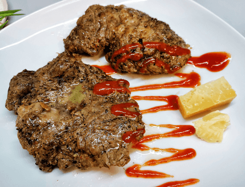 Стейк пиканья из мраморной говядины — изысканный деликатес, вдохновленный европейскими традициями. Пиканья, нежная часть говядины, славится своей мраморностью, что придает ей сочность и насыщенный вкус. Готовится стейк просто, но требует точности: сначала мясо смазывают оливковым маслом, затем приправляют морской солью и пряной смесью перцев. Обжарка на раскаленной сковороде раскрывает его богатый вкус, а сливочное масло придает дополнительную нежность. Этот стейк идеален как основное блюдо, подаваемое с свежими овощами и бокалом хорошего вина. Он является воплощением гастрономической роскоши, а его бархатистый вкус и тонкий аромат перцев делают его истинным удовольствием для ценителей мяса.