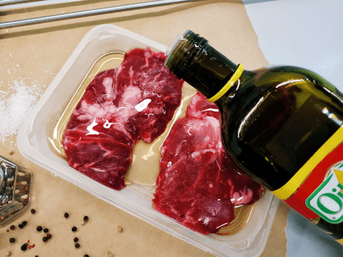 Brush the meat with olive oil.