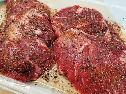 Sprinkle the meat with sea salt (only on one side).