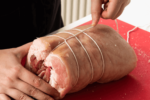 Place the roulade in an oven preheated to 130 degrees for 2.5–3 hours. The internal meat temperature should reach 63 degrees.