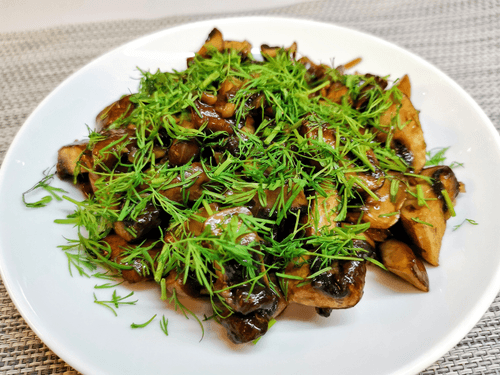 Chop the dill, separating the stems. Garnish the mushrooms before serving.