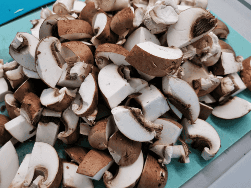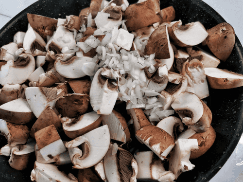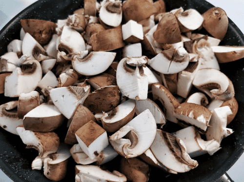 Mix the mushrooms and add a couple of tablespoons of vegetable oil.