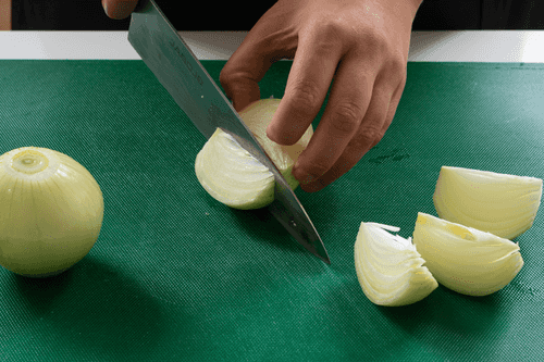 Cut the onion into large pieces.