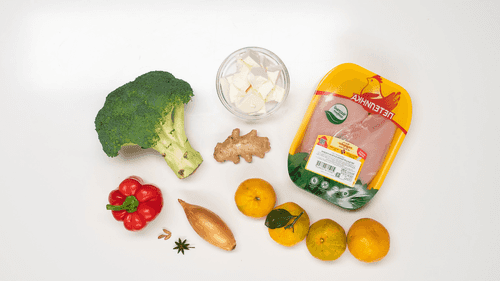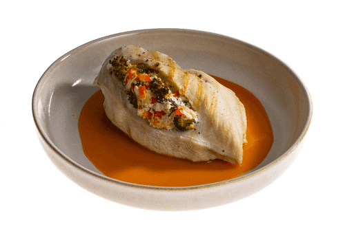 Steamed chicken breast stuffed with vegetables, with tangerine sauce