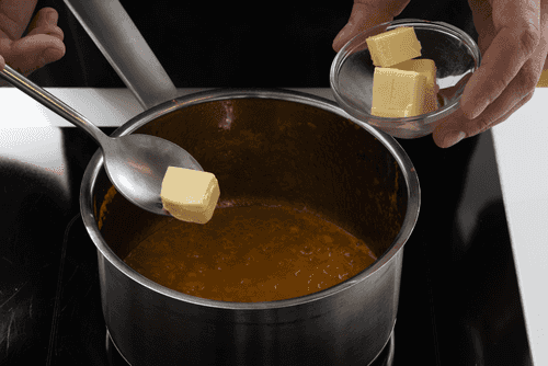 At the end, add butter to the sauce over low heat and melt it while stirring actively.