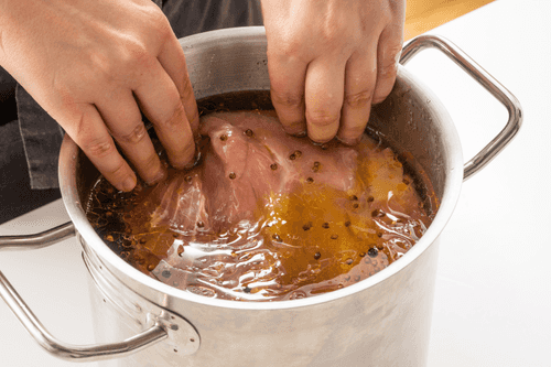 Soak the meat in brine and send it to the refrigerator for 6 hours.