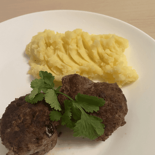 Котлетки с пюрешкой — это классическое блюдо русской кухни, наполненное уютом и домашним теплом. История котлет уходит корнями в русскую традицию приготовления мясных изделий, а картофельное пюре стало незаменимым дополнением благодаря своей нежной текстуре и сливочному вкусу. Сочные котлеты из баранины, пропитанные ароматом лука и специй, обладают аппетитной золотистой корочкой и мягким, насыщенным вкусом. Картофельное пюре, обогащенное сливочным маслом, придает блюду легкость и бархатистость. Веточка свежей петрушки завершает образ, добавляя нотку свежести. Это блюдо идеально подходит для семейных обедов, создавая атмосферу уюта и тепла, а также отлично сочетается с соленьями или легким овощным салатом. Простота приготовления делает его любимым выбором для домашней кухни.