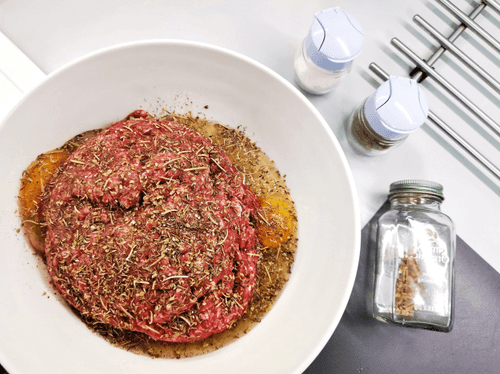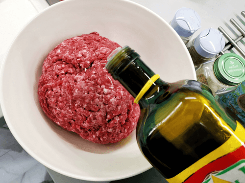 Add olive oil to the minced meat.
