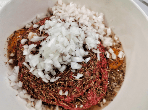 Send the onion to the minced meat.