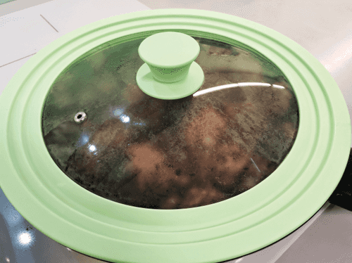 After 8-10 minutes, remove the lid and stir.