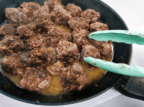 Turn the meatballs again, cover with a lid, and reduce the heat slightly.