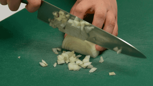 Chop the onion into small cubes.