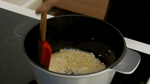 Heat vegetable oil in a thick-walled pot. Fry the chopped onion until golden.
