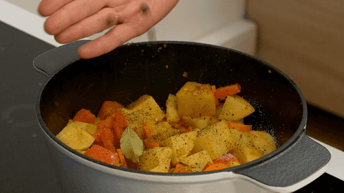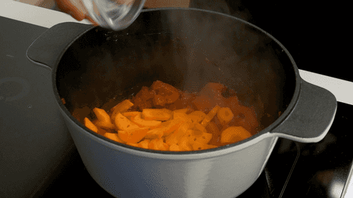 Add carrot to the pot and fry for 3 minutes.