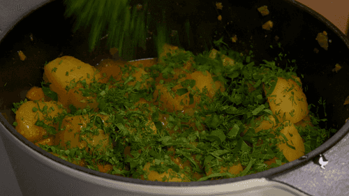 Sprinkle the cooked potatoes with chopped greens.