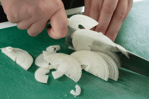 Slice the onion into thin half-rings.