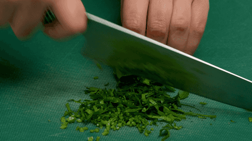 Remove the leaves from the thyme sprigs and chop them with a knife.