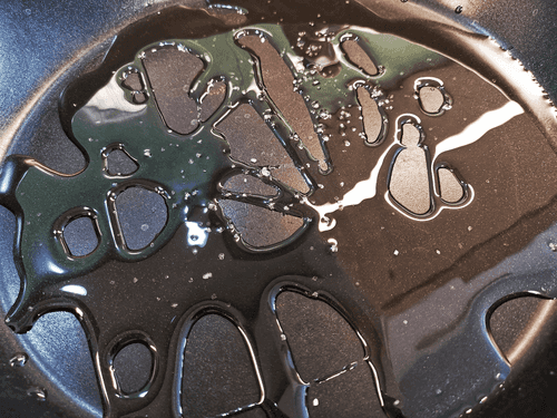 Pour oil into the pan and place it on high heat, add a couple of pinches of coarse sea salt.