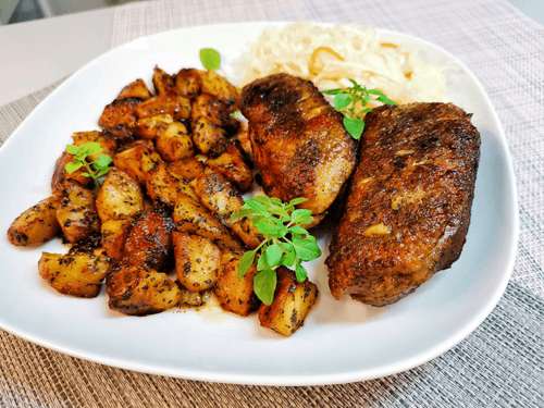Duck fillet with fried apples is an exquisite dish of French cuisine that embodies a harmony of flavors. Historically, duck has held an important place in French gastronomy, and the combination of juicy meat with caramelized fruits has become a classic. Tender duck infused with the aroma of garlic and spices acquires an appetizing crispy crust, while golden apples fried in duck fat reveal sweet and spicy notes. Curry and black pepper add a light spiciness to the dish, while dried basil complements the fruity freshness. This dish is perfect for a cozy family dinner or a festive feast.