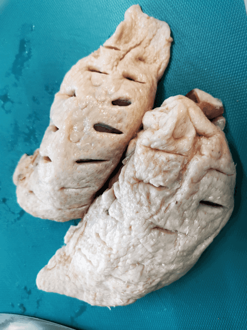 Check the duck's readiness by piercing the fillet on the side with a knife. Place it on foil.