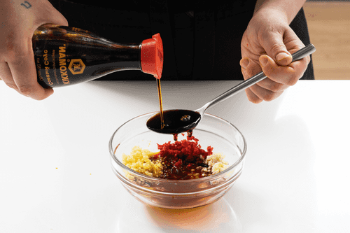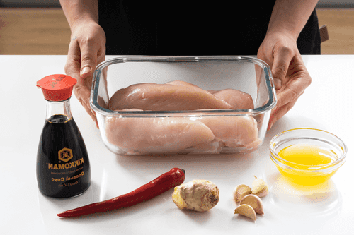 Chicken breasts marinated in soy sauce with garlic and ginger
