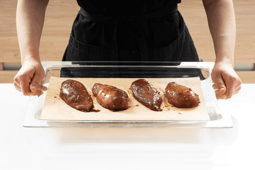 Take out the package and remove the chicken breasts. Do not pour out the marinade; it will still be useful.