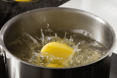 Peel the potatoes, cut them randomly, and put them to boil in salted water.