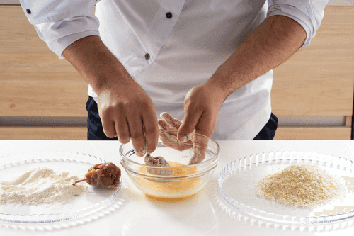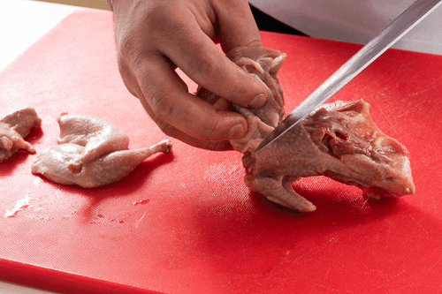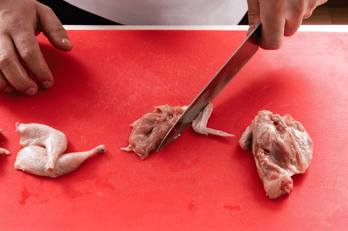 Carefully trim the meat at the base of the wing and clean the bone. Also prepare the second part of the breast.