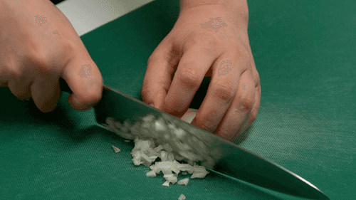 Peel the onion and chop it into small cubes.