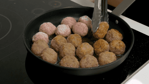 In a clean skillet, heat vegetable oil and fry the meatballs on all sides.