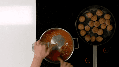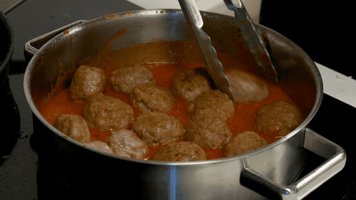 Place the fried meatballs in a saucepan, cover with a lid, and simmer on low heat for 10-15 minutes.
