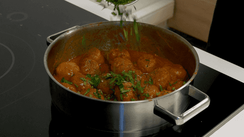 Finely chop the parsley, add it to the meatballs in the saucepan, and simmer for another 5 minutes.