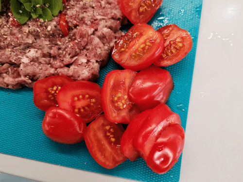 Cut the mozzarella to form 'pockets' for the tomatoes.