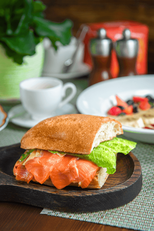 - Cold smoked salmon: 60 g