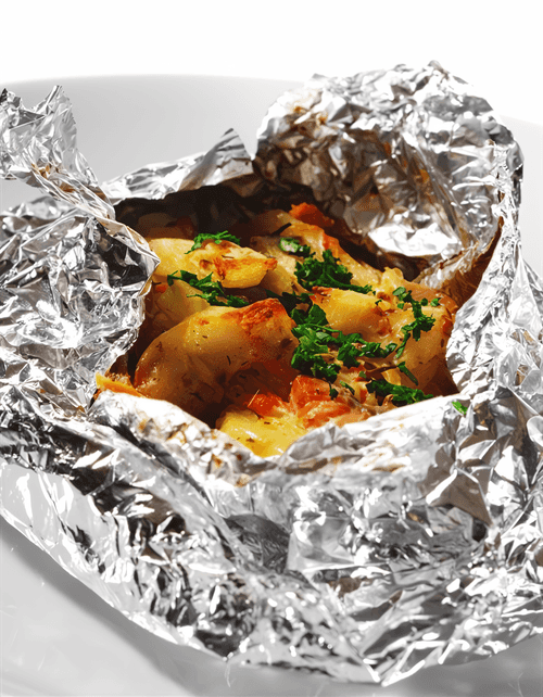 Place the prepared mixture in the middle of two pieces of foil, layer sliced carrots on top, and cover with tomato paste. Wrap the foil into tight envelopes. Bake in a preheated oven at 225 degrees for 15 minutes.