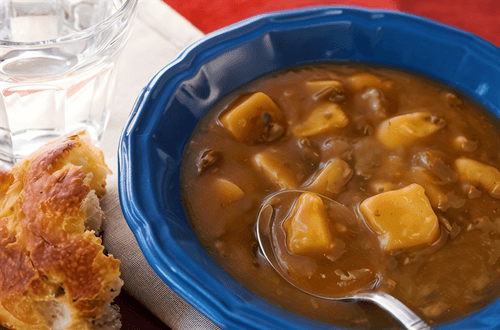 Azu with beef is a traditional dish of Tatar cuisine, impressing with its rich flavor and tender texture. Its roots go back centuries when nomadic peoples created nutritious and aromatic dishes from available ingredients. Stewed beef with onions, potatoes, and pickles acquires a special slightly spicy taste thanks to tomato paste and garlic. This dish warms and nourishes wonderfully, making it an ideal option for a family dinner. Azu is usually served with fresh herbs and bread that highlight its rich flavor bouquet. The excellent combination of spices makes azu indispensable in cold weather, while its soft consistency makes you return to this recipe again and again.