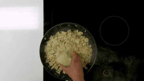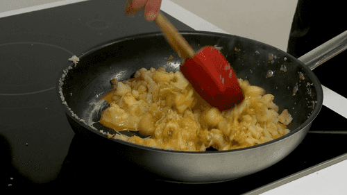 Pour the eggs into the pan with the cabbage and fry, stirring, for another 2-3 minutes until the eggs are cooked.