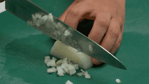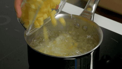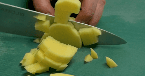 Peel the potato and cut it into small cubes about 5 mm on each side.