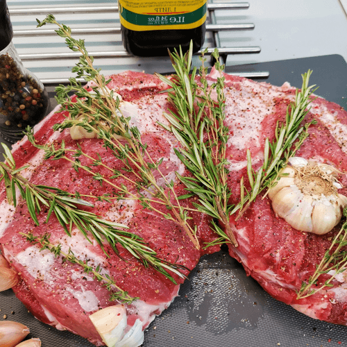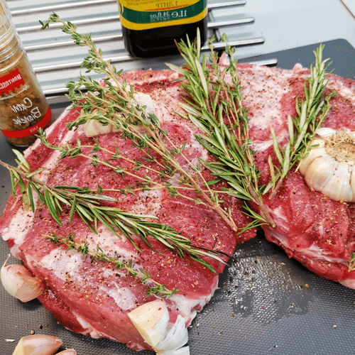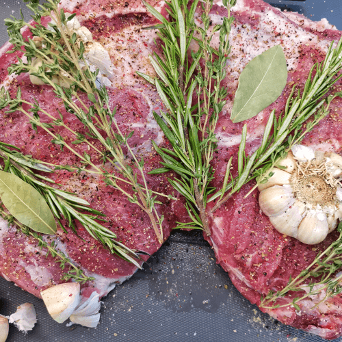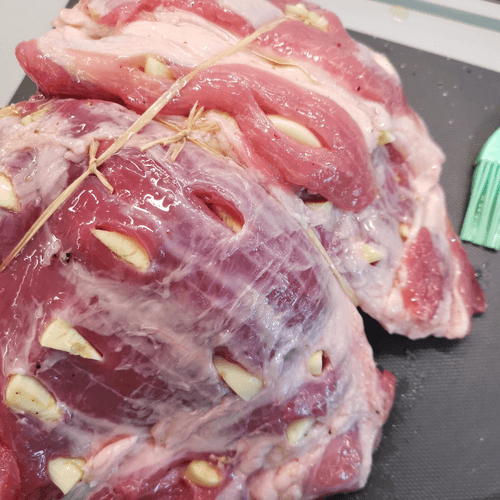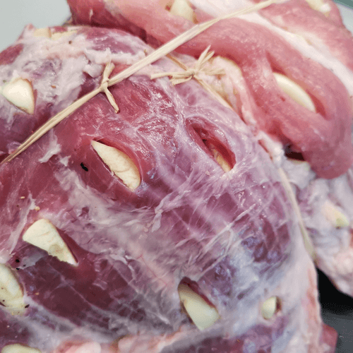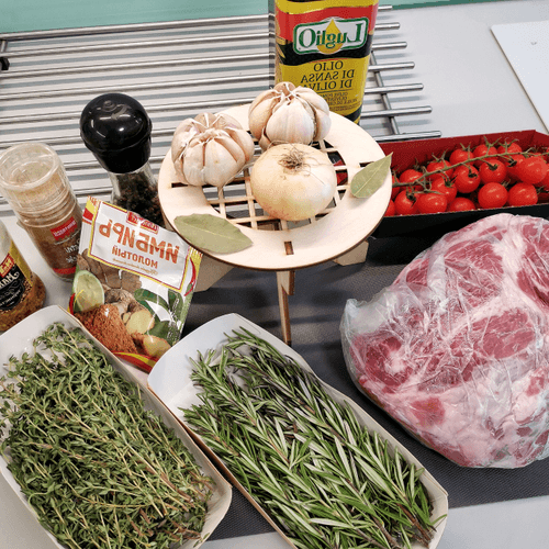 Send to the oven for another 10 minutes, reducing the temperature to 170 degrees. Before serving, cut the string and remove the herbs with garlic from the meat.