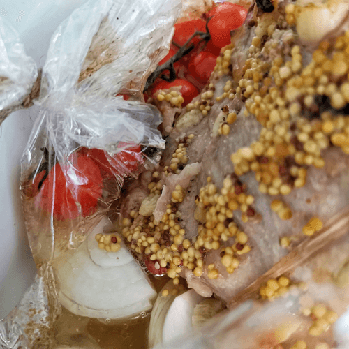 Spicy pork neck baked in a sleeve is the embodiment of French gastronomic art, harmoniously blending the aromas of garlic, rosemary, and thyme. The dish's history is rooted in the traditions of provincial French cuisine, where slow roasting allows the meat to reveal its full depth of flavor. Baking in a sleeve preserves the juiciness of the pork while infusing it with a bouquet of spices and delicate notes of Dijon mustard. The juicy texture and spiciness make this dish perfect for festive lunches or cozy family dinners. It is served hot with caramelized vegetables enriched with meat juices. This recipe exemplifies the ideal balance between simplicity in preparation and exquisite taste that will linger in memory and create an atmosphere of true culinary delight.