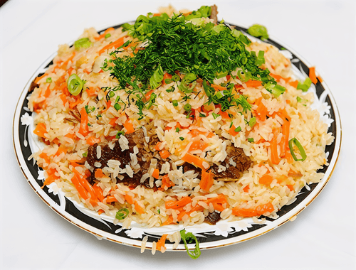 Uzbek pilaf with lamb fat is a dish that embodies the spirit of Eastern cuisine. Its history goes back centuries when nomadic peoples prepared hearty and nutritious food over an open fire. This pilaf is famous for its rich flavor: tender pieces of lamb are infused with the aromas of sweet carrots, spicy onions, and melted lamb fat, creating a harmony of tastes. The rice, carefully washed and soaked in meat juices, becomes fluffy and fragrant. Traditionally served in a mound with pieces of juicy meat and fresh onions, adding freshness and zest to the dish. Uzbek pilaf is not just food but a symbol of hospitality and family warmth that gathers loved ones around it and provides true culinary pleasure.