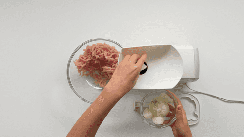 First, pass the meat through the grinder, then the soaked bread and onion.